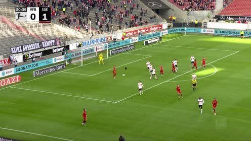斯图加特队门将神扑:在第38分钟,斯图加特队门将面对法兰克福队的一次射门,做出了精彩的扑救,将球挡出。